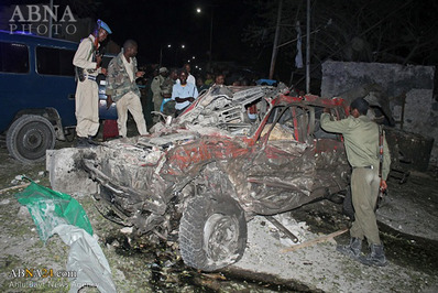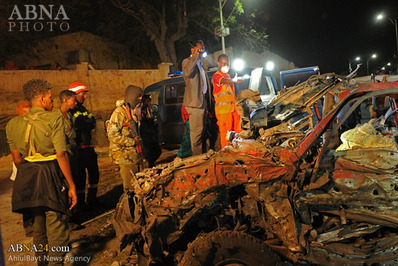 انفجار یک خودروی بمب گذاری شده در نزدیکی کاخ ریاست جمهوری سومالی جان پنج نفر را گرفت.«عبدالعزیز ابو مصعب» سخنگوی الشباب در گفتگو با رادیو اندلس متعلق به الشباب، عنوان کرد: نیروهایی جهادی برای هدف قرار دادن کاخ ریاست جمهوری سومالی اقدام به برنامه ریزی برای انفجار قوی کردند و این انفجار منجر به کشته شدن شماری شد.