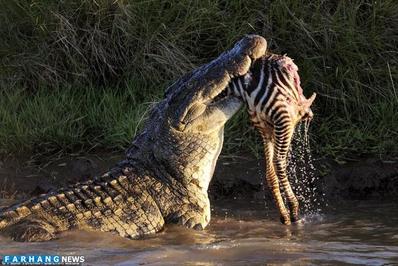 تصاویر/ بزم کروکدیل ها با گورخرها