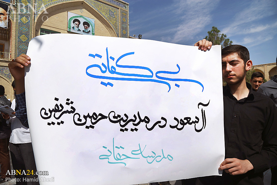 در پی وقوع فاجعه مرگبار منا که منجر به کشته و زخمی شدن تعداد زیادی از مسلمانان جهان به ویژه هموطنان عزیزمان شد، طلاب در اعتراض به بیکفایتی آلسعود در مدرسه فیضیه قم تجمع کردند.