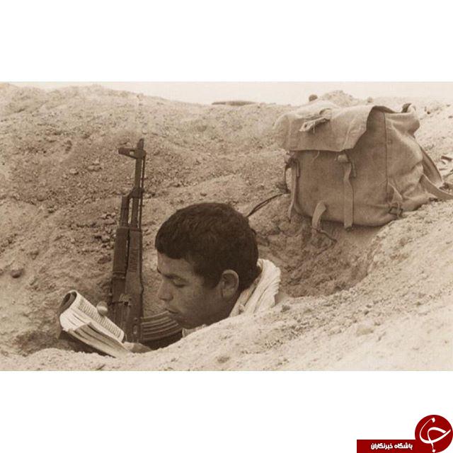 تصویر زیر نشان می دهد راز و نیاز با خداوند جا و مکان نمی شناسد و این عکس درس بزرگی برای بسیاری از ما است. در هفته دفاع مقدس تصویری از نوجوان رزمنده که مشغول قرائت قرآن در سنگری واقع در خط مقدم جبهه های جنگ که در سال 61 ثبت شده است و در فضای مجازی دست به دست می شود. گفتی است این عکس توسط کاوه گلستان گرفته شده است.