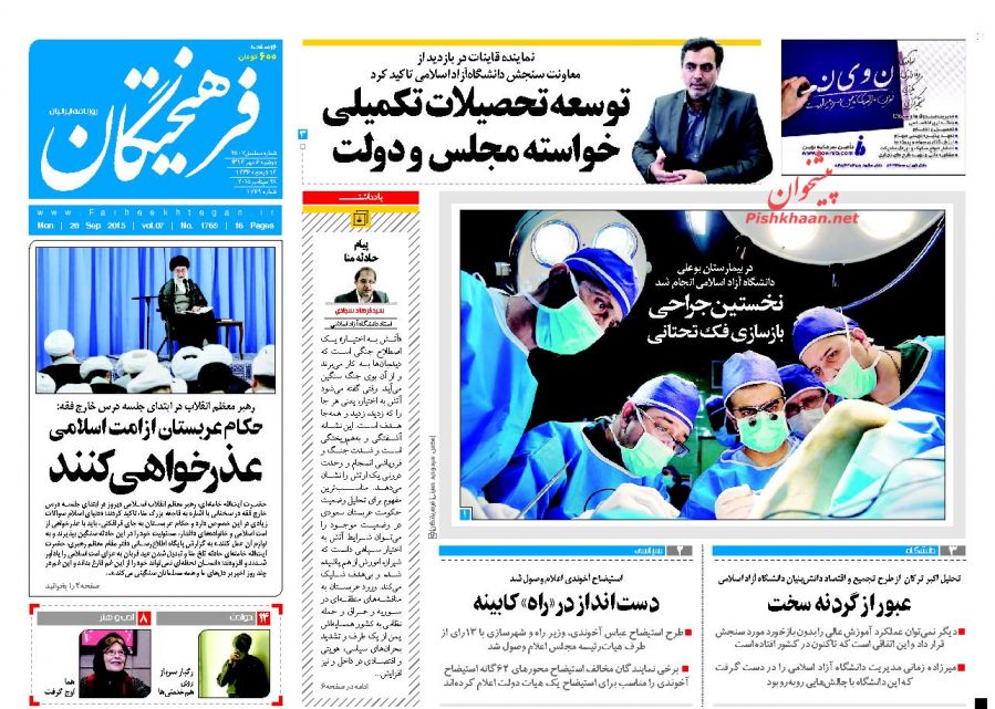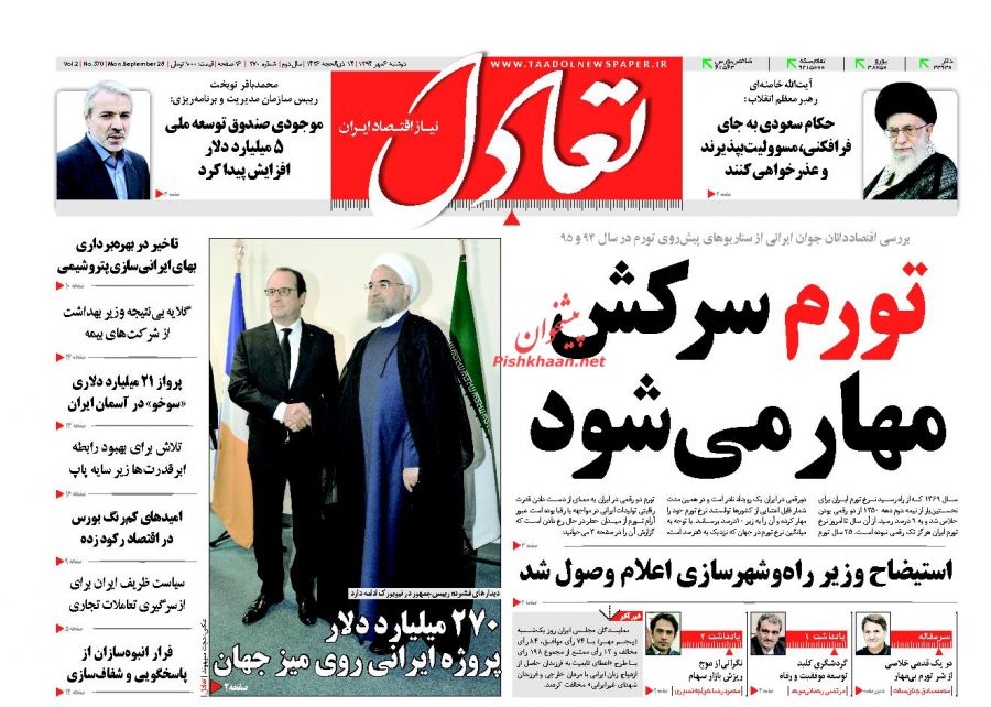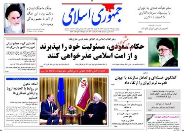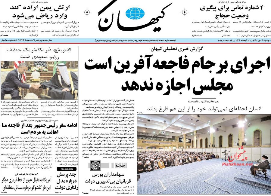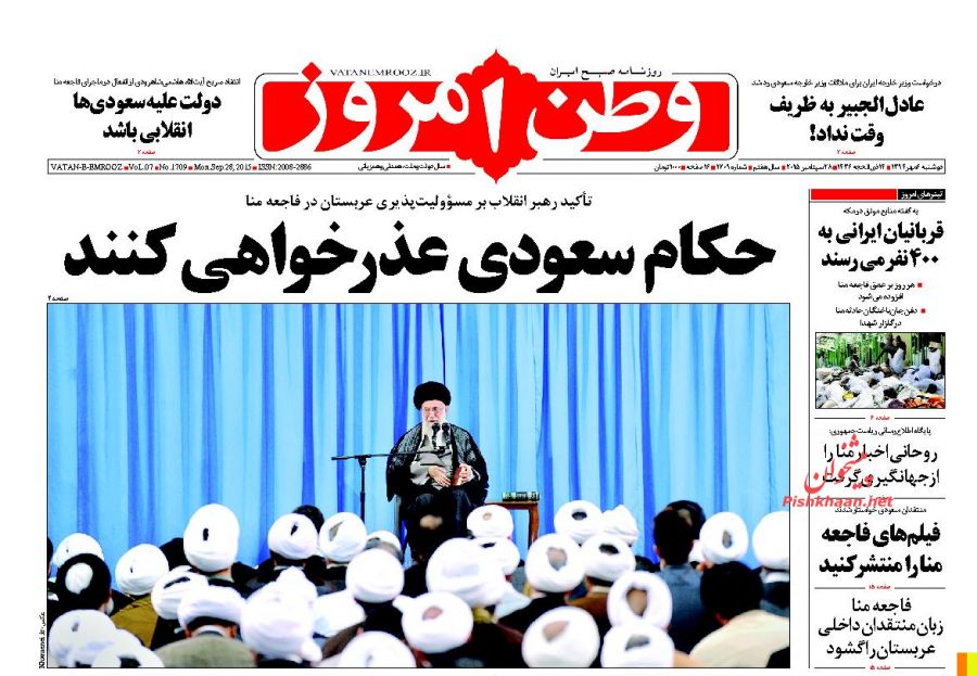 صفحه اول روزنامههای دوشنبه ۶ مهر ۱۳۹۴