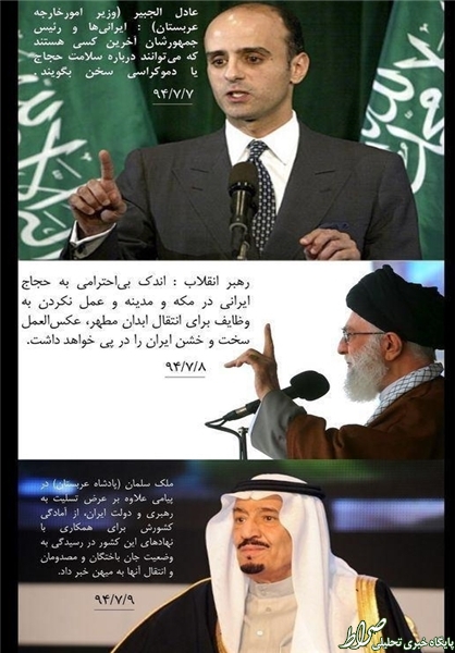 صراط: چند روز از فاجعه منا میگذشت و همچنان مردم ایران داغدار درگذشت هموطنان خود بودند، فیلمها و عکسهای منتشر شده از وضعیت اجساد حجاج و برخورد مسئولان سعودی با مجروحین هر لحظه بر غم و اندوه هموطنان میافزود تا اینکه صبح روز چهارشنبه رهبر معظم انقلاب در مراسم دانش آموختگی، تحلیف و اعطای سردوشی دانشجویان دانشگاههای افسری ارتش جمهوری اسلامی ایران خطاب به مسئولان سعودی با اشاره به حضور دهها هزار نفر از حجاج ایرانی در مکه و مدینه، هشدار دادند: «اندک بیاحترامی به حجاج ایرانی و همچنین عمل نکردن دولت عربستان به وظایف خود در قبال بدنهای مطهر، موجب عکسالعمل سخت و خشن ایران خواهد شد.»