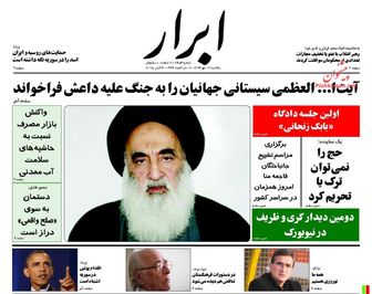 صفحه اول روزنامههای يکشنبه ۱۲ مهر ۱۳۹۴