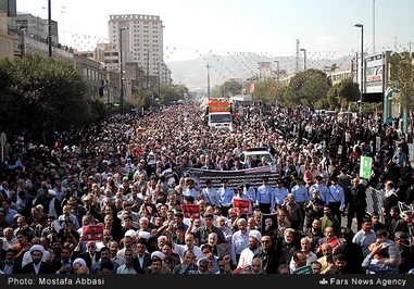 مراسم تشییع جانباختگان استان خراسان رضوی در منا صبح یکشنبه دوازدهم مهر ماه با حضور گسترده مردم در مشهد برگزار شد. استان خراسان رضوی آمار بیشترین تعداد جانباختگان در این فاجعه را دارد.