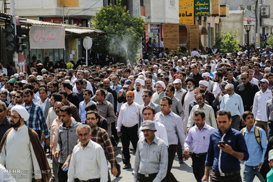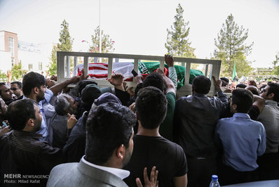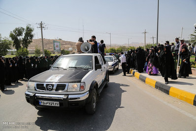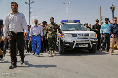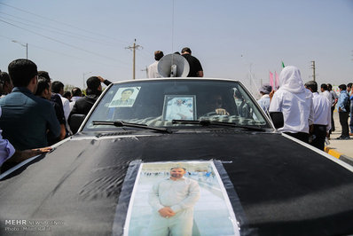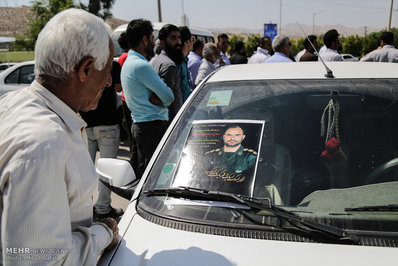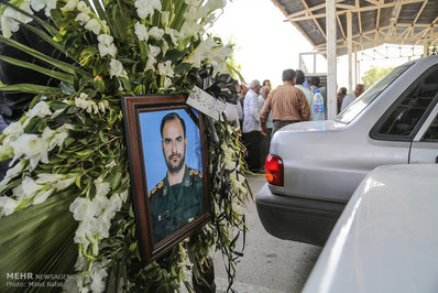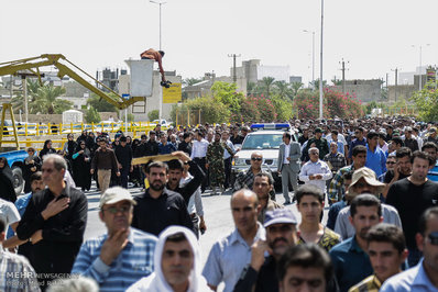 تشییع پیکر سرهنگ محمد خندان از حجاج جان باخته فاجعه منا صبح امروز یکشنبه با حضور گسترده مردم در شهرستان جم برگزار شد.