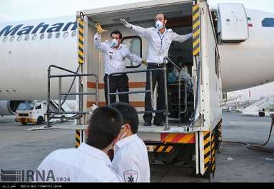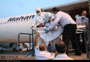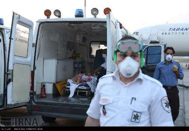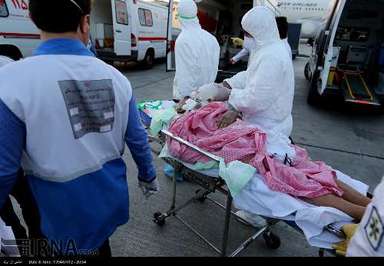 شش مصدوم فاجعه منا که از دستگاه های تنفسی استفاده می کردند عصر یکشنبه وارد فرودگاه امام خمینی(ره) شدند و تحویل کادر پزشکی و اورژانس تهران شدند تا به بیمارستان انتقال پیدا کنند.
