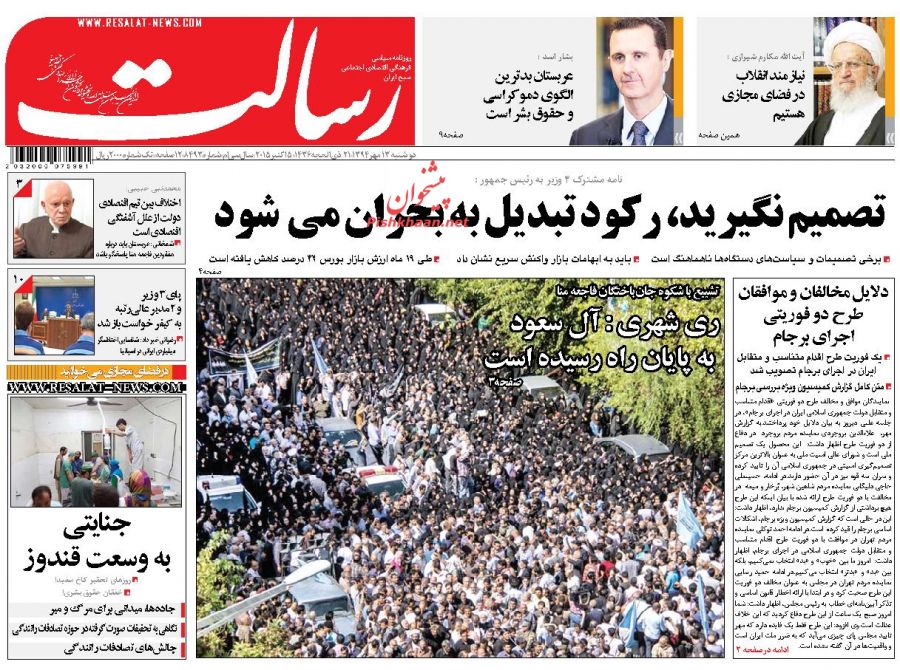صفحه اول روزنامه های دوشنبه 13 مهر 1394