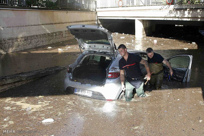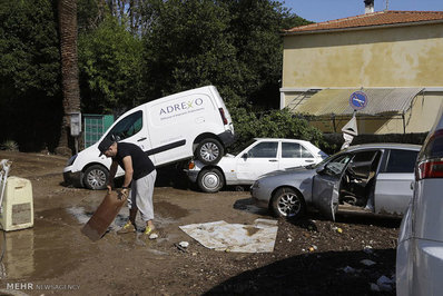 بارندگی سیل آسا و به راه افتادن سیلاب در شهرهای تفریحی و توریستی جنوب شرق فرانسه موجب کشته شدن 19 تن و وارد امدن خسارات فراوان شد.