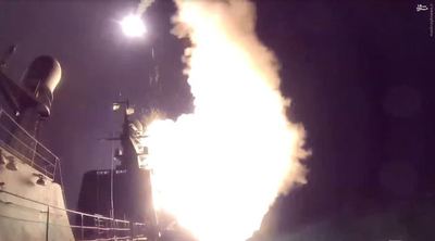 تصاویر/ لحظه شلیک ناو روسی به داعش