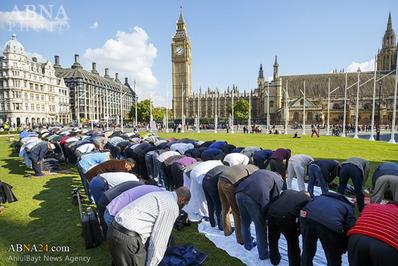 صدها تن از مسلمانان انگلیس با برگزاری نماز جمعه در مقابل پارلمان این کشور در لندن نسبت به تغییرات آب و هوایی در بریتانیا اعتراض کردند. این نخستین بار است که مسلمانان اقدام به برگزاری نماز جماعت مقابل پارلمان انگلیس میکنند.