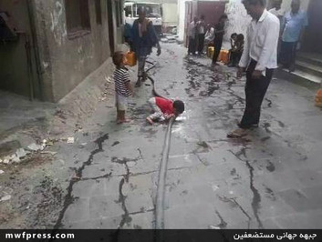 سایت خبری "یمن پرس" با انتشار عکسی دراینباره نوشت، یک کودک یمنی به دلیل نداشتن پول برای خرید آب سالم، آبهایی را که در کف خیابان در مسیر عبور لوله جمع شده است، مینوشد.