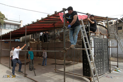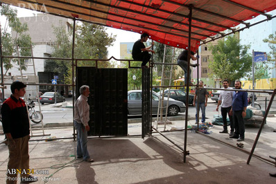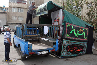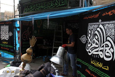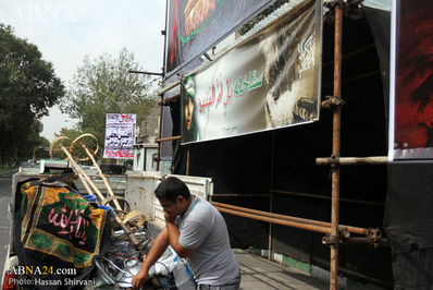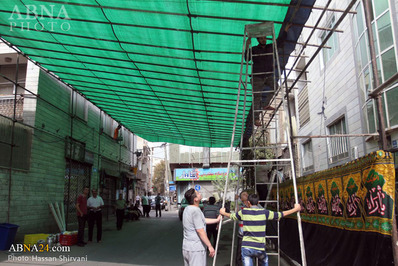 مردم تهران در آستانه ماه محرم جهت عزاداری حضرت اباعبدالله الحسین (ع) شهر و خیابان را سیاه پوش کرده و جهت اقامه عزا آماده می کنند.