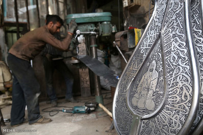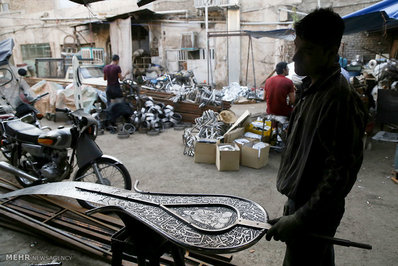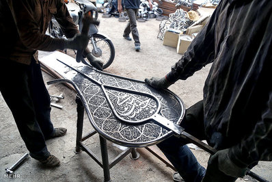 کارگاه های ساخت و تولید علامت در ایام محرم و عزاداری حضرت اباعبدالله الحسین (ع) رونق مضاعفی به خود گرفته است.