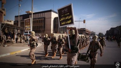 نیروهای ویژه داعش با برگزاری مانوری نظامی در برابر چشمان مردم موصل به نمایش توانمندیهای رزمی خود پرداختند.