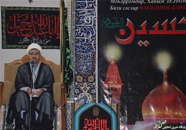 امام جماعت مسجد شیعیان بیشکک در سخنرانی خود هر شب موضوعاتی را در مورد حادثه کربلا و حضرت امام حسین(ع) بیان میکنند.
