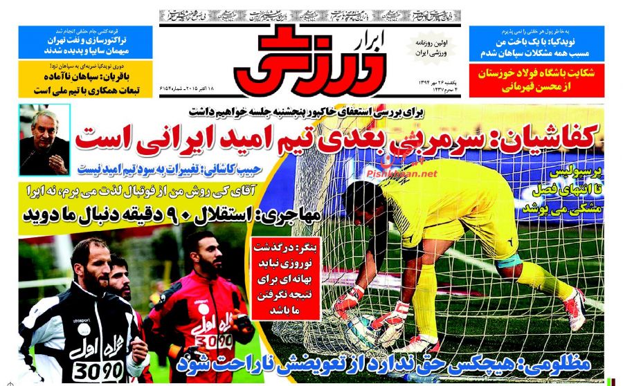 صفحه اول روزنامه های ورزشی يکشنبه ۲۶ مهر ۱۳۹۴