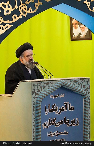 مراسم نماز جمعه اول آبان ماه تهران از ساعت 10:25 به امامت آیتالله سیداحمد خاتمی در دانشگاه تهران برگزار شد. پیش از خطبههای نماز جمعه حجت الاسلام و المسلمین رئیسی دادستان کل کشور به مناسبت عاشورا و تاسوعای حسینی سخنرانی کرد. آیتالله سیداحمد خاتمی خطیب موقت نماز جمعه تهران در خطبههای نماز جمعه با اشاره به نامه مهم مقام معظم رهبری به ریاست جمهوری کشورمان اظهار داشت: نامه تاریخی عمیق و دقیق مقام معظم رهبری پرونده برجام را بست.