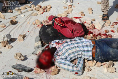 این گروه تروریستی دو جوان سوری را در استان حلب در شمال سوریه به اتهام لواط در ملاء عام سنگسار کرد.