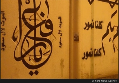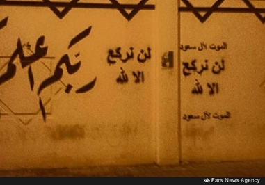 همزمان با این تظاهراتها، گروهی از جوانان انقلابی در خیابانهای مختلف از جمله خیابان «الثوره» در شهر القطیف اقدام به شعار نویسی علیه شاه عربستان کردهاند که از آن جمله میتوان به شعار «مرگ بر آل سعود و ای سلمان خائن» اشاره کرد.
