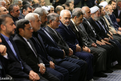 وزیر امور خارجه و مدیران این وزارتخانه، سفیران و مسئولان نمایندگیهای جمهوری اسلامی ایران در خارج از کشور صبح امروز (یکشنبه) با حضرت آیتالله خامنهای رهبر معظم انقلاب اسلامی دیدار کردند.
