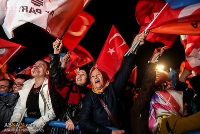 وی روز یکشنبه پس از اعلام نتایج اولیه آرا در جمع هواداران حزب عدالت و توسعه در شهر قونیه گفت امروز برای دموکراسی ما و مردم ما یک پیروزی است.