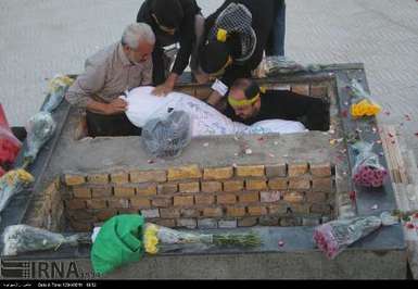 پیکر پاک دوشهید گمنام پس از تشییع بر روی دستان قدر شناس مردم اردکان در َآموزشگاه شهید بهشتی به این شهر آرام گرفتند.