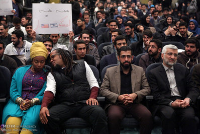 همایش زنده باد مرگ بر آمریکا ظهر امروز سه شنبه با حضور سعید جلیلی عضو مجمع تشخیص مصلحت نظام در تالار شیخ انصاری دانشگاه تهران برگزار شد .