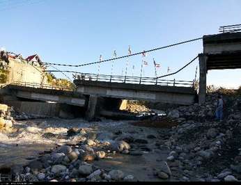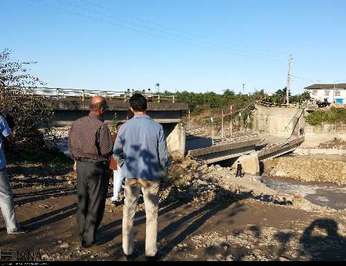 پل معلم کوه بخش نشتا تنکابن بر اثر طغیان رودخانه ریزش کرد