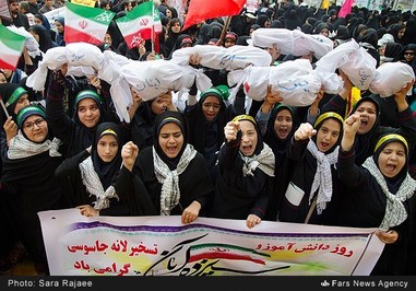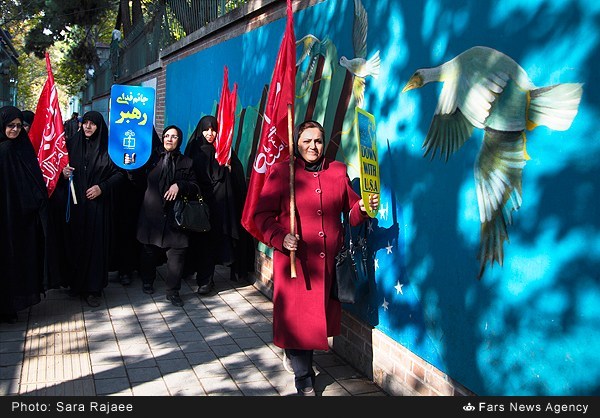 مراسم تظاهرات ضداستکباری یوم الله ۱۳ آبان صبح چهارشنبه در مقابل لانه جاسوسی سابق آمریکا با حضور گسترده اقشار مختلف مردم برگزار شد. راهپیمایان تهرانی با در دست گرفتن پلاکاردهایی همچون «حافظ آمریکا بودن ممنوع» و «نفوذ سیاسی اقتصادی ممنوع» به مسئولان کشورمان در مورد خوشبینی به رژیم عهدشکن آمریکا هشدار دادند.