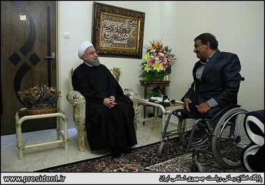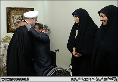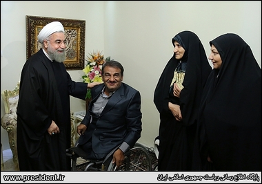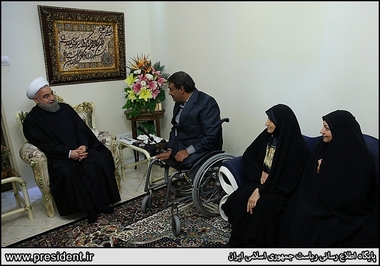 دکتر روحانی در این دیدار که دکتر نهاوندیان رییس دفتر، حسین فریدون دستیار ویژه اجرایی و حجت الاسلام والمسلمین شهیدی رییس بنیاد شهید و امور ایثارگران نیز وی را همراهی می کردند، لوح تقدیری را به جانباز بهرامی تقدیم کرد و با اهدای هدایایی از همسر، سه دختر و نوه های این جانباز بزرگوار دفاع مقدس تجلیل به عمل آورد.