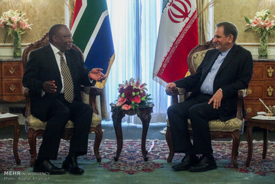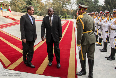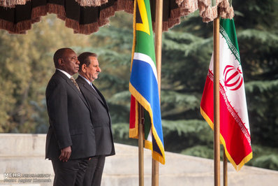 مراسم استقبال رسمی سریل راما فوزا معاون رئیس جمهور آفریقای جنوبی با حضور معاون اول رئیس جمهور اسحاق جهانگیری عصر امروز شنبه در مجموعه سعدآباد برگزارشد.