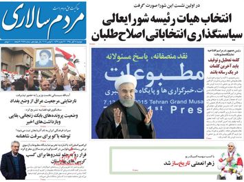 صفحه اول روزنامه های دوشنبه ۱۸ آبان ۱۳۹۴