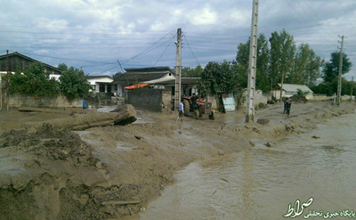 وسط روستا عبور می کند گل و لای از مسیر رودخانه وارد روستا شده به همین