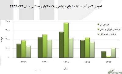 این در حالی است که نرخ تورم مواد خوراکی و آشامیدنی در روستاها در سال گذشته 9 درصد بوده و اختلاف شدید با رشد 1.7 درصدی هزینههای خوراکی را نشان می دهد. در عین حال، متوسط هزینه های غیرخوراکی روستاییان در سال گذشته 11 درصد افزایش یافته که از تورم 17.8 درصدی این بخش هم پایین تر است.