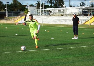 * این تمرین مانند روز گذشته در زمین چمن مصنوعی ورزشگاه برگزار شد. آفتاب تند گوام هم باعث شده بود تا با نظر کادر فنی، بازیکنان با استفاده از واکس زیر چشمشان را سیاه کنند تا از انعکاس آفتاب در چشمشان تا حد زیادی گرفته شود. کارلوس کیروش نیز خود برای جلوگیری از انعکاس آفتاب از این راهکار بهره برد.