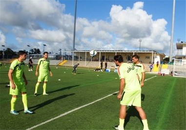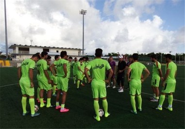 * بازیکنان تیم ملی پس از صرف ناهار در هتل محل اقامت خود و استراحتی کوتاه، ساعت 15 به محل انجام بازی روز سهشنبه رسیدند و در این زمین به مدت 90 دقیقه تمرین کردند.