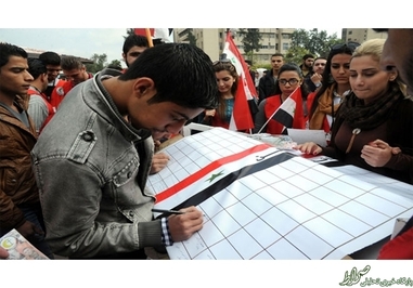 در ادامه تصاویری را از امضای طولانیترین طومار جهان در حمایت از بشار اسد مشاهده میکنید: