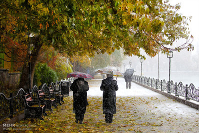 بارش برف پاییزی تبریز را سفید پوش کرد.