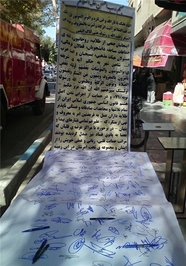 صراط: مردم انقلابی و شهیدپرور شاهینشهر با امضاء طوماری به طول 10 متر از تلاشها و زحمات فرماندار، امامجمعه و دادستان شاهینشهر در رابطه با پلمب قلیانخانهها و اجرایی شدن اصل هشتم قانون اساسی جمهوری اسلامی قدردانی و از این حرکت حمایت کردند.
