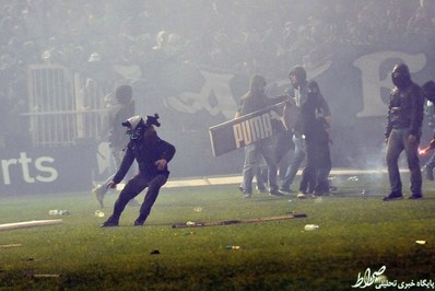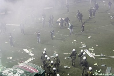 همچنین خشونت و درگیری در داخل این استادیوم نیز رخ داد. شدت خشونت ها به اندازه ای بود که مقامات امنیتی یونانی تصمیم به لغو این دیدار فوتبال گرفتند.