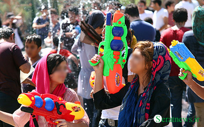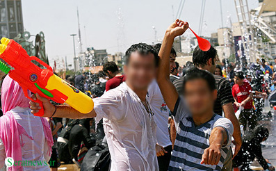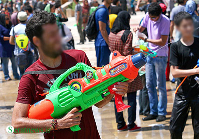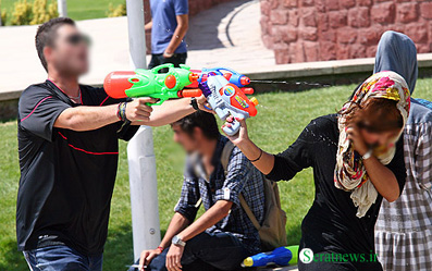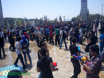 بفرمائید! هر هفته در یکی از پارکهای تهران (البته شمال تهران) زن و مرد ، دختر و پسر ، کوچک و بزرگ به اسم جنگ تفنگ آب پاش روی همدیگر آب میریزند! بعد هم فریاد می زنند که در این مملکت آزادی نداریم !