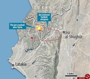 صراط: شبکه تلویزیونی الجزیره ساعاتی پیش در خبری فوری اعلام کرد: یک فروند جنگنده روسی در داخل خاک سوریه در استان لاذقیه، نزدیک مرزهای ترکیه سرنگون شد.