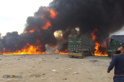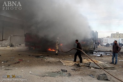 بر اساس تصاویر گرفته شده در طرف سوری مرز با استان کلیس در جنوب ترکیه، در روز چهارشنبه کامیونهای در حال سوختن دیده شده که امدادگران میگویند ناشی از حملات هوایی بوده است.