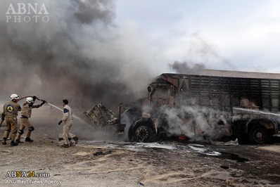 برخی منابع خبری اعلام کردند که این کامیونها حامل کمکهای بشردوستانه وعازم شهرستان اعزاز واقع در شمال حلب سوریه بودهاند.