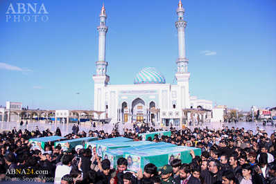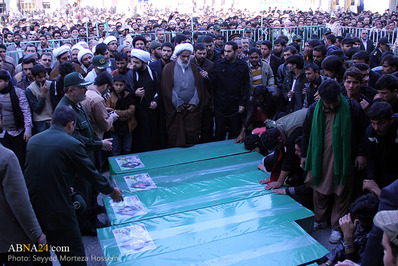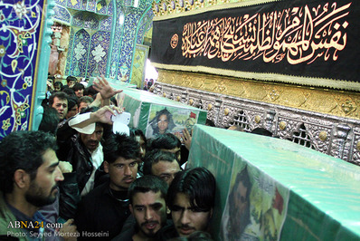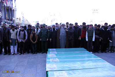 پیکر مطهر هفت تن از شهدای پاکستانی مدافع حرم حضرت زینب(ع) که تحت عنوان گردان "زینبیون" در سوریه به ماموریت جهادی پرداخته بودند؛ در شهر مقدس قم تشییع شد.
