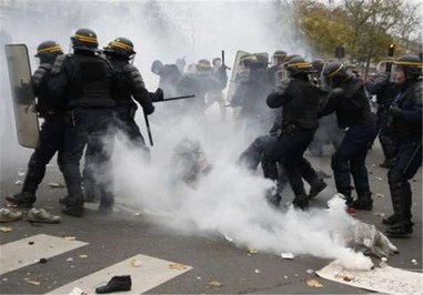 با تجمع در پاریس با پلیس درگیر شدند که در این درگیری پلیس به سوی مردم