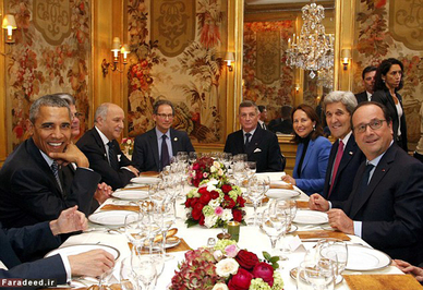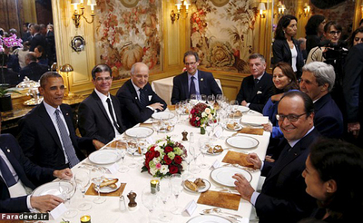 در حاشیه کنفرانس جهانی آب و هوا، فرانسوآ اولاند و باراک اوباما، روسای جمهوری فرانسه و آمریکا برای صرف شام به یکی از رستورانهای مجلل پاریس رفتند.