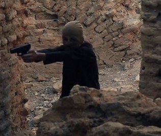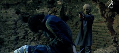 کودک آموزش دیده در یک بازی کودکانه اسرای داعش را اعدام میکنند.