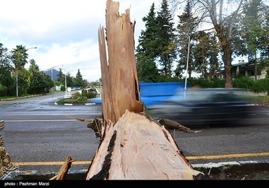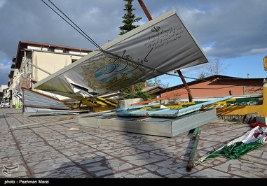 خسارات ناشی از طوفان شب گذشته در رامسر و تنکابن