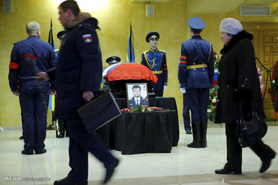 روس ها جنازه خلبان هواپیمای سوخوی ساقط شده به دست نیروهای هوایی ترکیه را هچون یک قهرمان تشییع کردند.